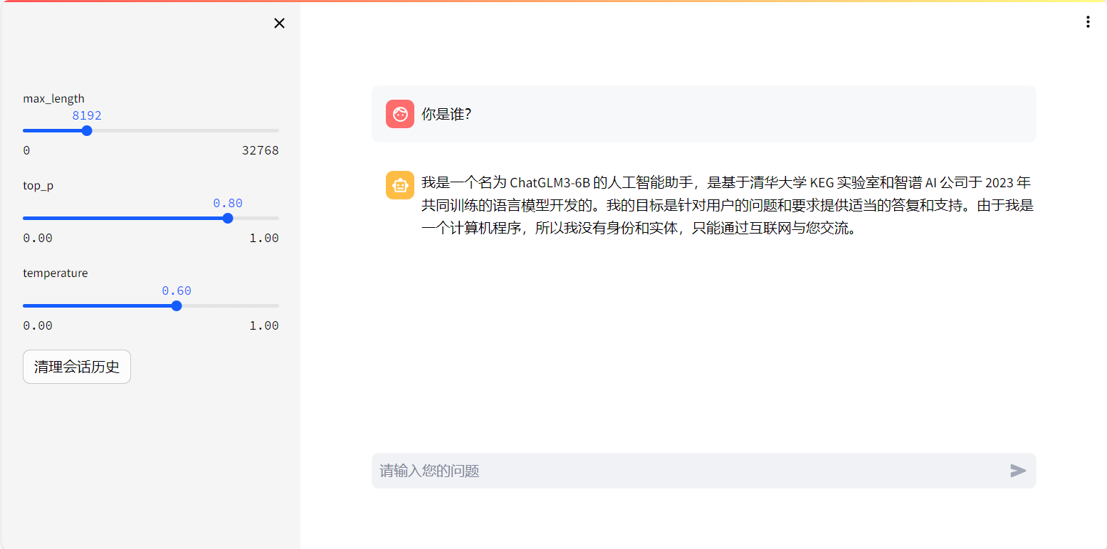 然后就可以浏览器打开这个地址,然后就可以和ChatGML3聊天了。