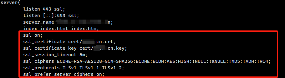 将crt和key上传到服务器。例如:/etc/nginx/cert/
